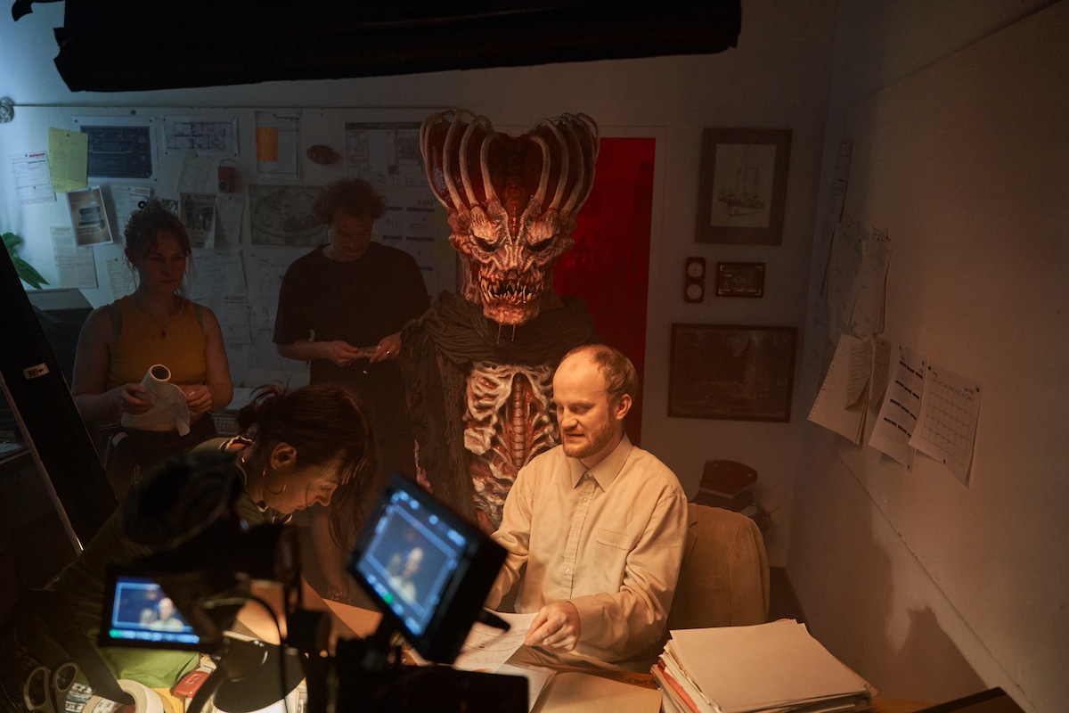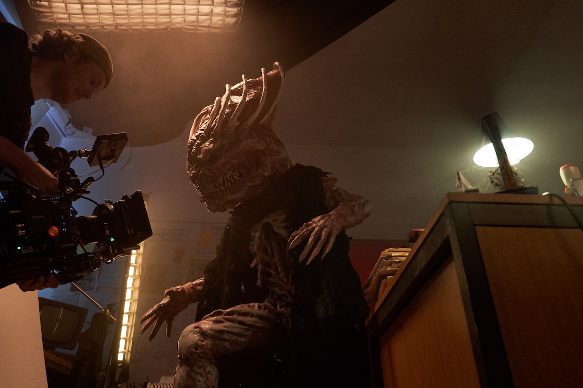 Er stimmte schließlich zu, weil die Wahl von anamorphotischen Objektiven für ihn zum angestrebten Look passte, denn das Team wollte die Bildästhetik der 1980er-Jahre-Creature-Features zum Leben erwecken. Das hieß aber auch eine Abkehr von Handkamera und viel Arbeit über Stativ und Dolly. Kleeßen wollte Ruhe im Bild, ein paar Fahrten und Schwenks, welche die Räume erzählen und Bilder zum Entdecken auch gerne stehen lassen. „Das hat auch den Vorteil, dass wir so mehr vom tollen Setdesign sehen“, sagt DoP Kleeßen. „Wenn ich da immer nur auf Blende 1.2 im Gesicht hänge und man sieht vom Hintergrund nichts, wäre das schade.“