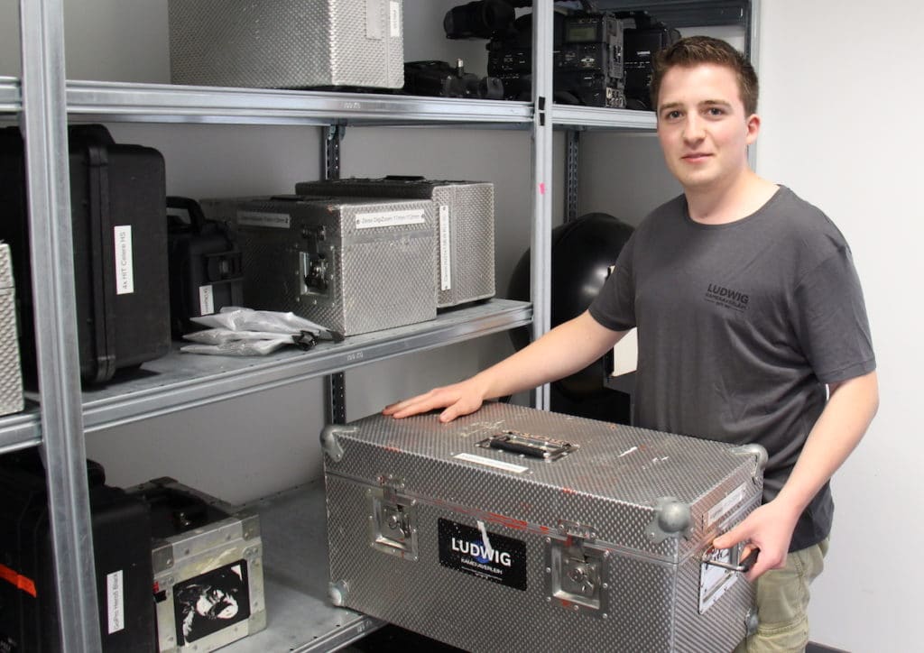 Ich bin Auszubildender zum Mediengestalter für Bild und Ton bei Ludwig Kameraverleih in Köln und absolviere gerade die letzten Tage meines ersten Ausbildungsjahres. Die Ausbildung hier hat vor allem einen technischen Schwerpunkt, mein Arbeitsplatz ist daher auch in der Werkstatt. Hier wird das gesamte Equipment, hauptsächlich Kameras, Objektive, Monitore und viel Zubehör nach jedem Einsatz auf alle Funktionen überprüft und gereinigt, damit alles zuverlässig funktioniert.