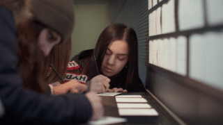 Die Führung der Schulklasse bei „Was bleibt.“ habe ich bewusst langbrennweitiger gedreht, um die Jugendlichen von ihrer Umgebung abzusetzen und dadurch Ruhe und Intimität zu erzeugen. Durch die physische Distanz konnte ich zudem eine beobachtende und analysierende Haltung einnehmen. Aber auch hier gilt: Möchte ich die Einstellungsgröße ändern, ohne aus dramaturgischen Gründen die Brennweite zu wechseln, muss ich meinen Standpunkt ändern. Durch das Ändern des Standpunktes oder das Aushalten der Brennweite in Situationen, in denen man weder Standpunkt noch Objektiv ändern kann, entstehen oftmals interessante und kompromisslose Bilder. Das finde ich spannend. Visuelle Stärke lebt von gegenseitiger Annäherung. Es ist für mich jedes Mal ein Geschenk, wenn Menschen, die ich filme, ihren Alltag und ihre Geschichten mit mir teilen. [14959]