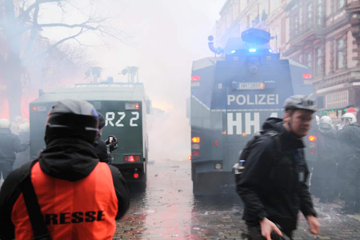 Über das Konzept des „embedded journalism“, über seine Vor- und Nachteile, habe ich in meinen Büchern geschrieben. Aus dem Inland ist mir das Angebot aber nicht bekannt. Ich habe allerdings auch schon kritische Lagen auf Demos erlebt, in denen die Polizei uns Berichterstattern anbot, sich in der Nähe des Wasserwerfers oder des Pressesprechers aufzuhalten. Gerne machen die das aber nicht, weil man dort ja auch stört. Vor allem zwischen den Polizeiketten sollte man sich aber nicht aufhalten. Wenn die plötzlich Befehl bekommen „aus der Postenreihe“ zu gehen, dann kann es gefährlich werden.