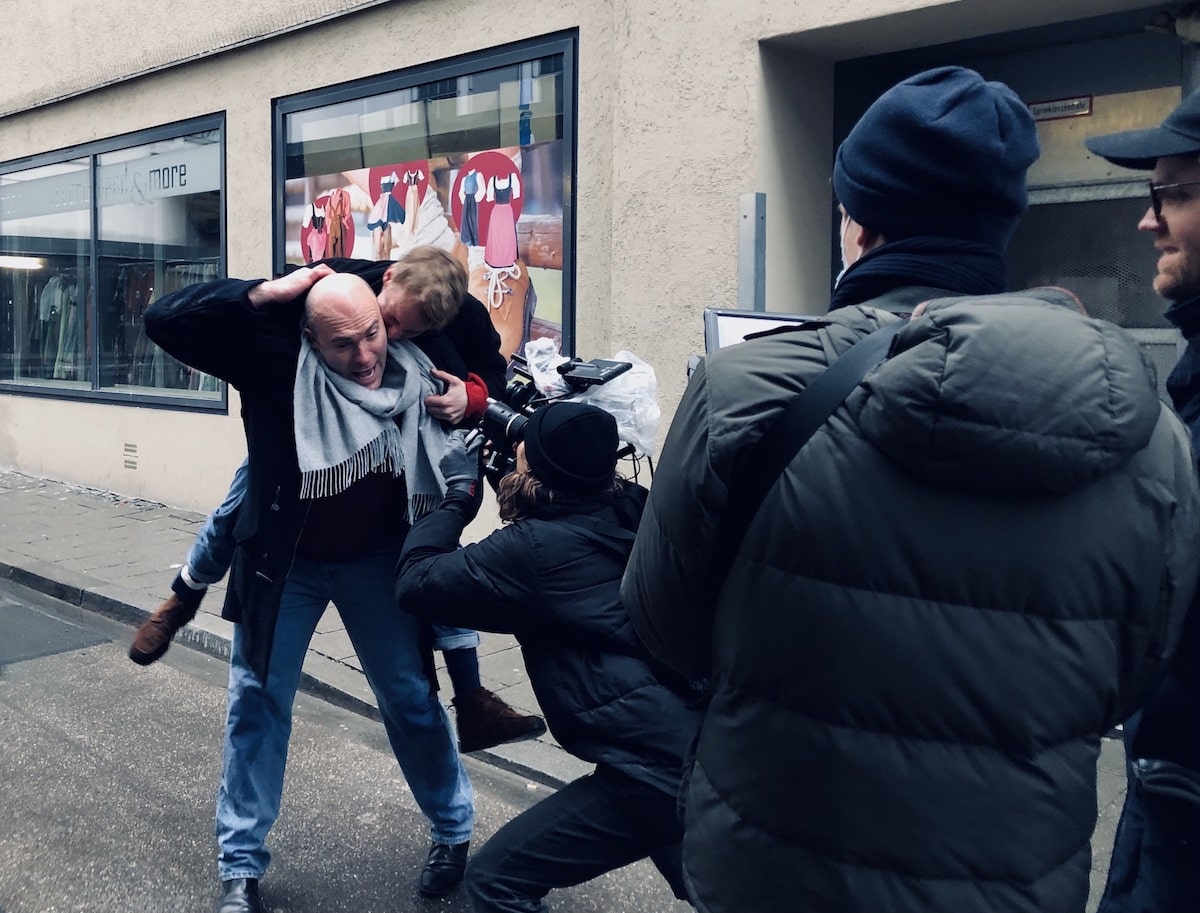 Ich bin auch davon überzeugt, dass das einen Teil des Films ausmacht, dass keine Komparsen dabei waren. Beim Dreh der Prügel-Szene haben teilweise Passanten eingegriffen, weil sie dachten, es gäbe eine Schlägerei. Wir konnten das zum Glück recht schnell klarstellen. Es gab also überraschenderweise viel Zivilcourage. [15292]