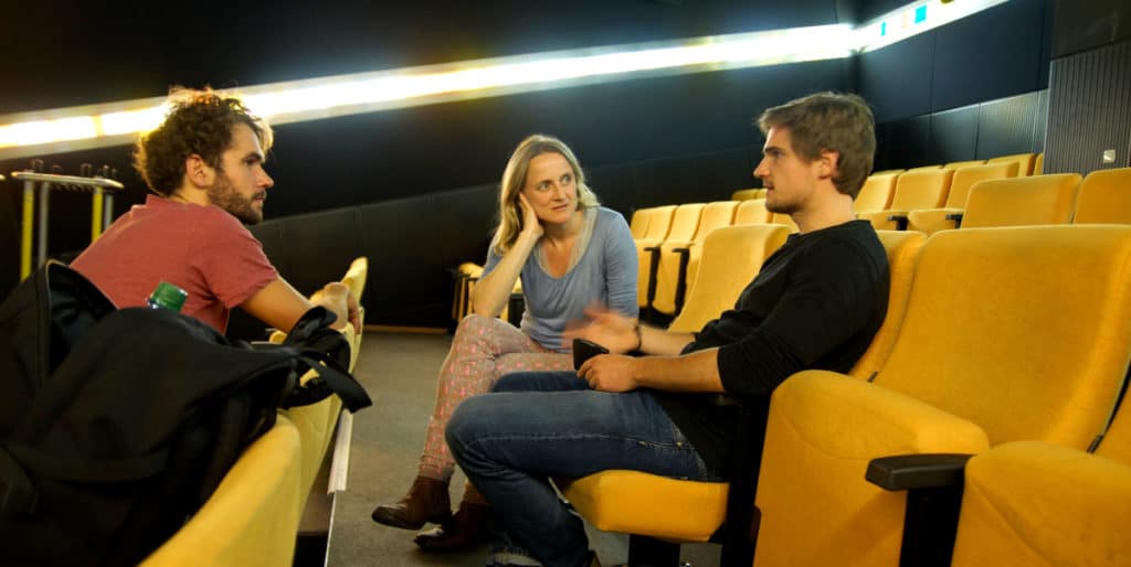 Valentin Selmke: Hannes und ich sind jetzt beide im dritten Fachsemester im Master-Studium. Wir haben davor drei Jahre lang den Bachelor gemacht. Das Studium ist ja so aufgebaut, dass man erst drei Jahre den Bachelor als Grundstudium hat und dort sowohl im dokumentarischen als auch im szenischen Bereich Arbeiten ausprobieren kann und Übungen hat. In dieser Zeit kann man auch seine Partner für zukünftige Projekte finden.
