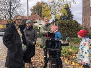 Kameraassistentin Alexandra Wallace, DoP Lorena Duran und Maike Dugaro, Mutter der Kinderdarstellerinnen Frieda Dugaro und Käthe Dugaro am Set von Bambirak