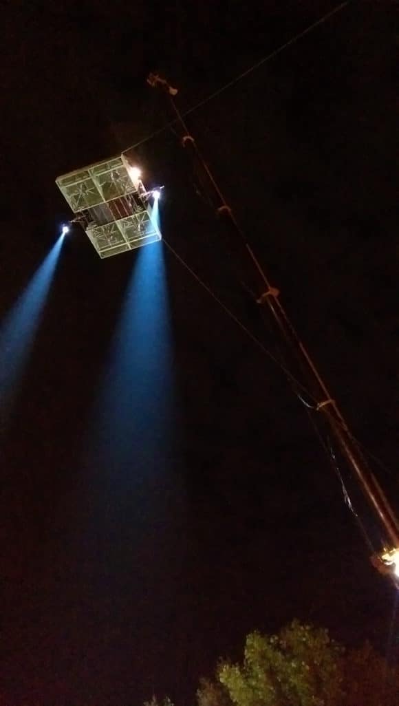 Das war „Give in to me“ mit Slash zusammen, da hängen im Hintergrund viele 24-kW-Dino-Lights herum, und weil die dann geflasht wurden, also immer 12 × 24, da hat man einen etwas größeren Generator gewählt, damit die Dinos beim schnellen Einschalten nicht ins Flackern geraten. Wir hatten einen 40-Fuß-Container mit einem 1,6- Megawatt-Generator von Aggreko. Dem Michael Jackson haben wir dann für die Close-ups aus ungefähr zwei Metern 30 kW ins Gesicht gehalten.