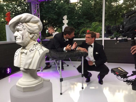 2016 kam Sky auf Axel Brüggemann und mich zu und fragte, ob wir mit ihnen den neuen Kultur-Kanal „Sky Arts HD“ starten wollten, und zwar mit der Weltpremiere der viertägigen Liveübertragung von Wagners „Ring des Nibelungen“. Da sagt man natürlich aus mehreren Gründen zu! Einmal, weil ich viele Jahre viel mit Musiktheater zu tun hatte. Ich bin ein begeisterter Opern- und Theatergänger. Dann habe ich viele Shows, Liveband-Aufzeichnungen und Musikproduktionen gehabt. Dabei habe ich als Ton-, Kameramann und als Produzent gearbeitet, so dass ich keine Angst davor hatte. Das sind ja 16 Stunden Aufzeichnung und 8 Stunden Show dazu! Dazu braucht man Routine und Struktur. Beides hatte ich, weil ich auch sehr viel Regie im aktuellen Geschäft geführt habe. Dabei kam es drauf an, alles auch schnell einmal umzuschmeißen und aus dem Augenblick heraus neu zu konzipieren. Es war also auf der einen Seite Interesse und auf unserer Seite Erfahrung vorhanden. Gleichzeitig fühlte ich mich persönlich auch sehr herausgefordert.