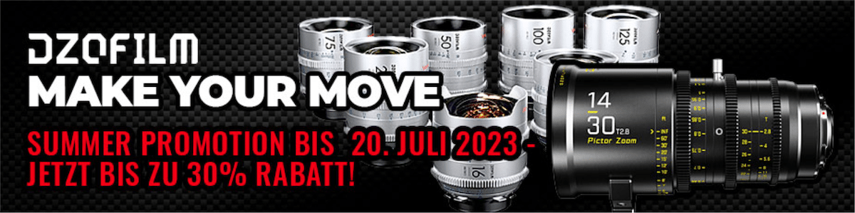 Noch bis zum 20. Juli 2023 erhalten Sie einen Rabatt von bis zu 30% auf alle DZOFILM Objektive und DZOFILM Kits sowie auf die Marlin Expander! Nutzen Sie auch unser 0% Leasing Angebot!