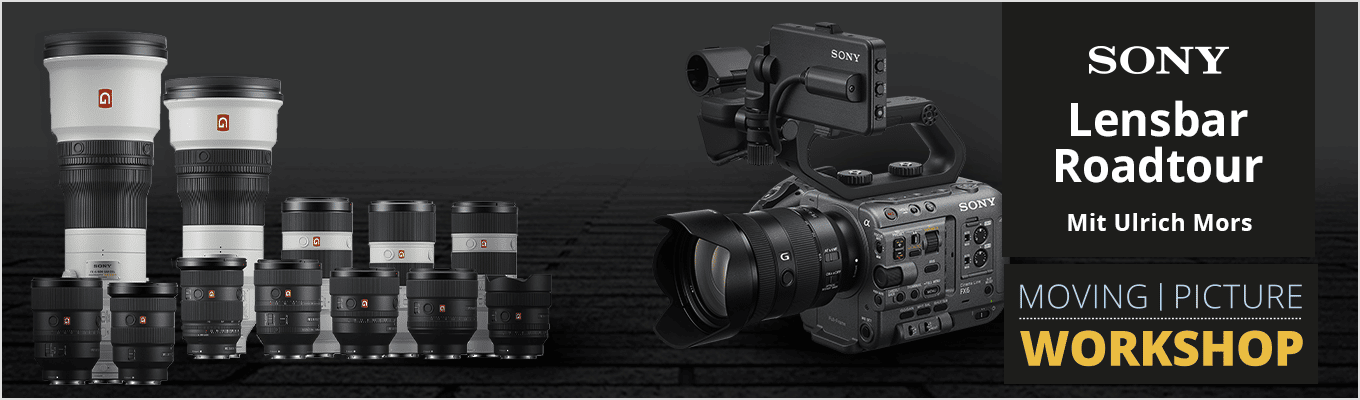 Während der Cinema Line Lensbar bei Teltec Rhein-Main, München und Berlin könnt ihr neben den FX9, FX6 und FX3 Kameras eine große Anzahl an Sony G-Master und Cine Optiken sowie die neue UWP-D Serie von Sony testen. Sony Trainer Ulrich Mors beantwortet dabei eure Fragen zu Sonys umfangreichem Angebot an Kameras und Objektiven und gibt Tipps und Tricks aus der Filmpraxis weiter. Oder lernt bei der Sony Roadshow in Köln, Berlin oder München die weltweit erste PTZ-Kamera mit austauschbaren Objektiven, einem Vollformat-Bildsensor und PTZ-Funktion zum Schwenken, Neigen und Zoomen kennen: die FR7.
