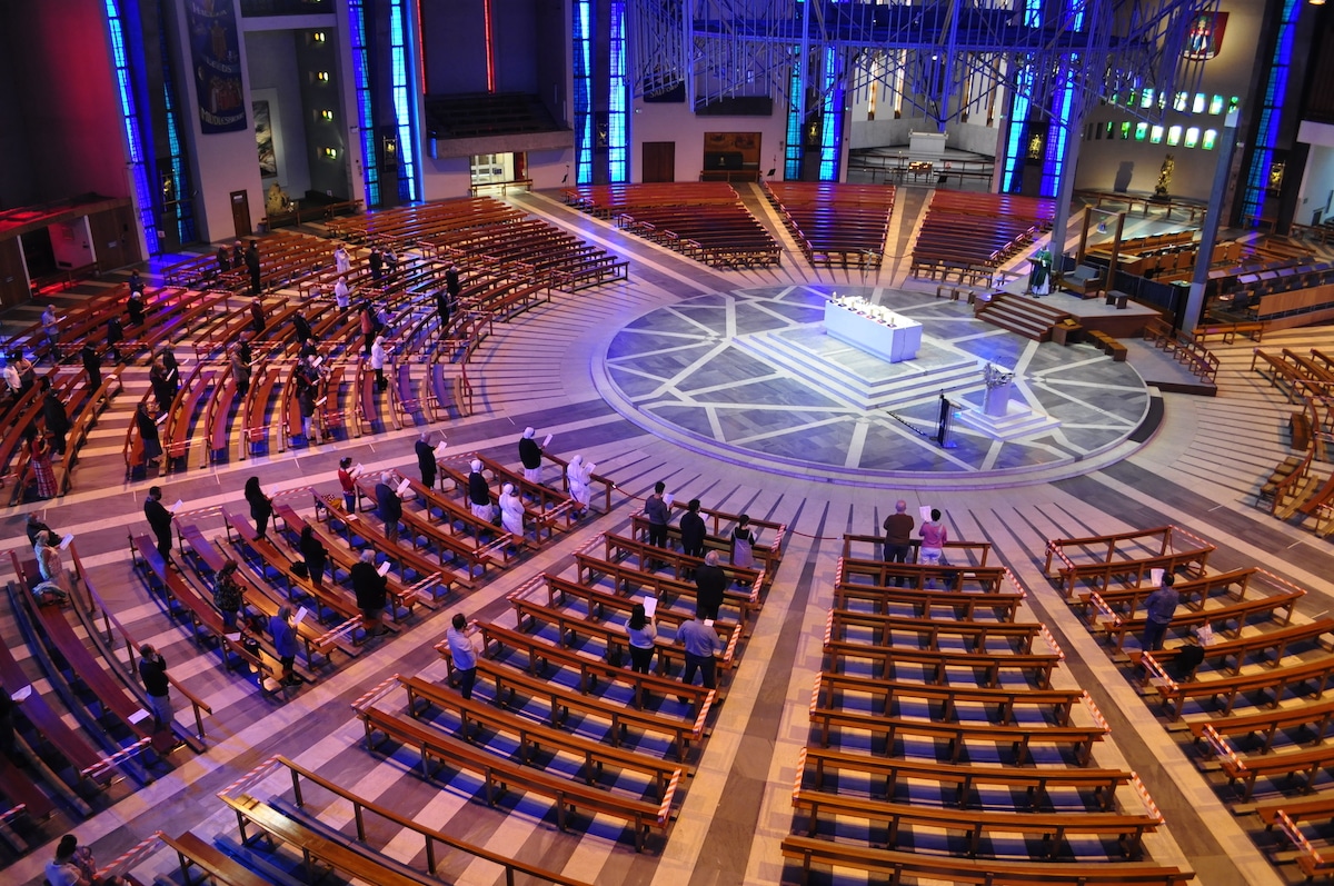 Wie das gelingt, zeigt die Metropolitan Cathedral in Liverpool. Die größte katholische Kathedrale in England streamt regelmäßig die Sonntagsmesse für ein Remote-Publikum von über 5.000 Menschen. Bei der Auswahl überzeugte die optische Zoom-Funktion der Panasonic-Kamera und damit die Möglichkeit, diese äußerst diskret zu installieren. Eine einzelne PTZ-Kamera hat die Flexibilität, durch eine voreingestellte Auswahl über Weitwinkelaufnahmen die gesamte Kathedrale einzufangen oder eine Nahaufnahme des Priesters oder der Lektoren zu liefern.