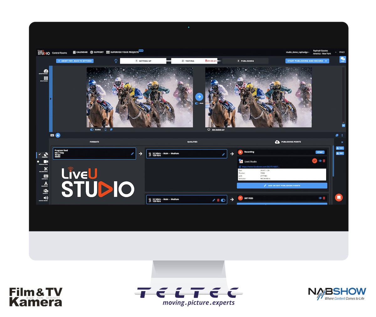 LiveU Studio ist eine voll skalierbare SaaS-Lösung, mit der es einfach ist, mehr Live-Inhalte über eine Vielzahl von digitalen Medienkanälen zu erstellen und zu verteilen. LiveU Studio unterstützt mehrere IP-Video-Protokolle und bietet Live-Switching, Audio-Mixing, Grafiken, Remote-Gastmanagement und One-Click-Verteilung auf bis zu 30 verschiedenen simultanen digitalen Zielen. Diese Lösung stellt laut LiveU einen neuen Ansatz bei derLive-Produktion dar, weil das hochwertige, latenzarme LRT-Protokoll im gesamten Workflow nutzt, von der Beitrags- und Produktionsphase bis hin zur Verteilung.