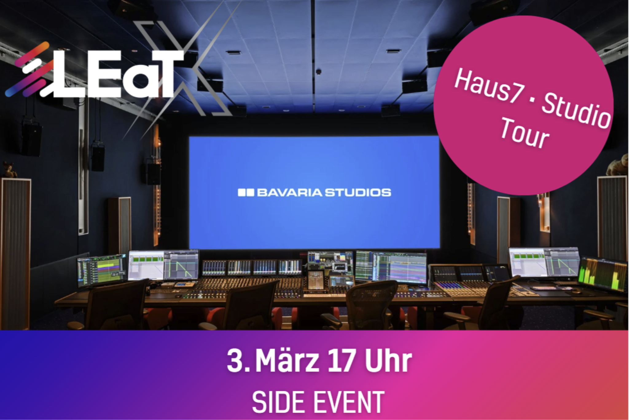 Erlebe live und vor Ort, wie bei Bavaria Film im Haus7 modernste Audio- und Bildtechnologien auf jahrzehntelange Film- und Studio-Tradition treffen. Bei diesem Side Event erhältst du spannende Einblicke hinter die Fassade eines der wohl ältesten Standorte der Filmtongeschichte.
