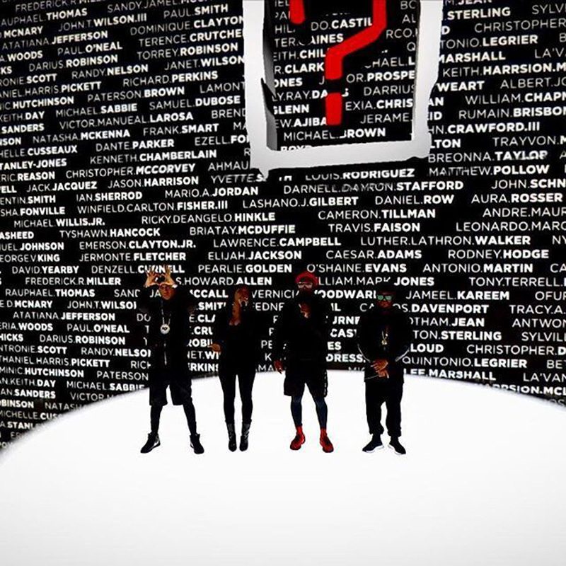In der Performance zu ihrem wahrscheinlich bekanntesten Song „Where is the Love?“ steht die Band auf einer Plattform und über ihnen schwebt ein rotes Fragezeichen als AR-Element. Im Hintergrund tauchen im Verlauf des Songs die Namen der Opfer von Polizeigewalt auf. „Mit der Kombination aus Kameratracking, Echtzeit-Rendering, und virtuellen Umgebungen direkt im Live-Set und in Betrachtung mit der Kamera erlaubt xR Technologie den Auftretenden, ihr Umfeld direkt zu sehen und damit zu interagieren“, sagt Tom Rockhill, CSO bei disguise.