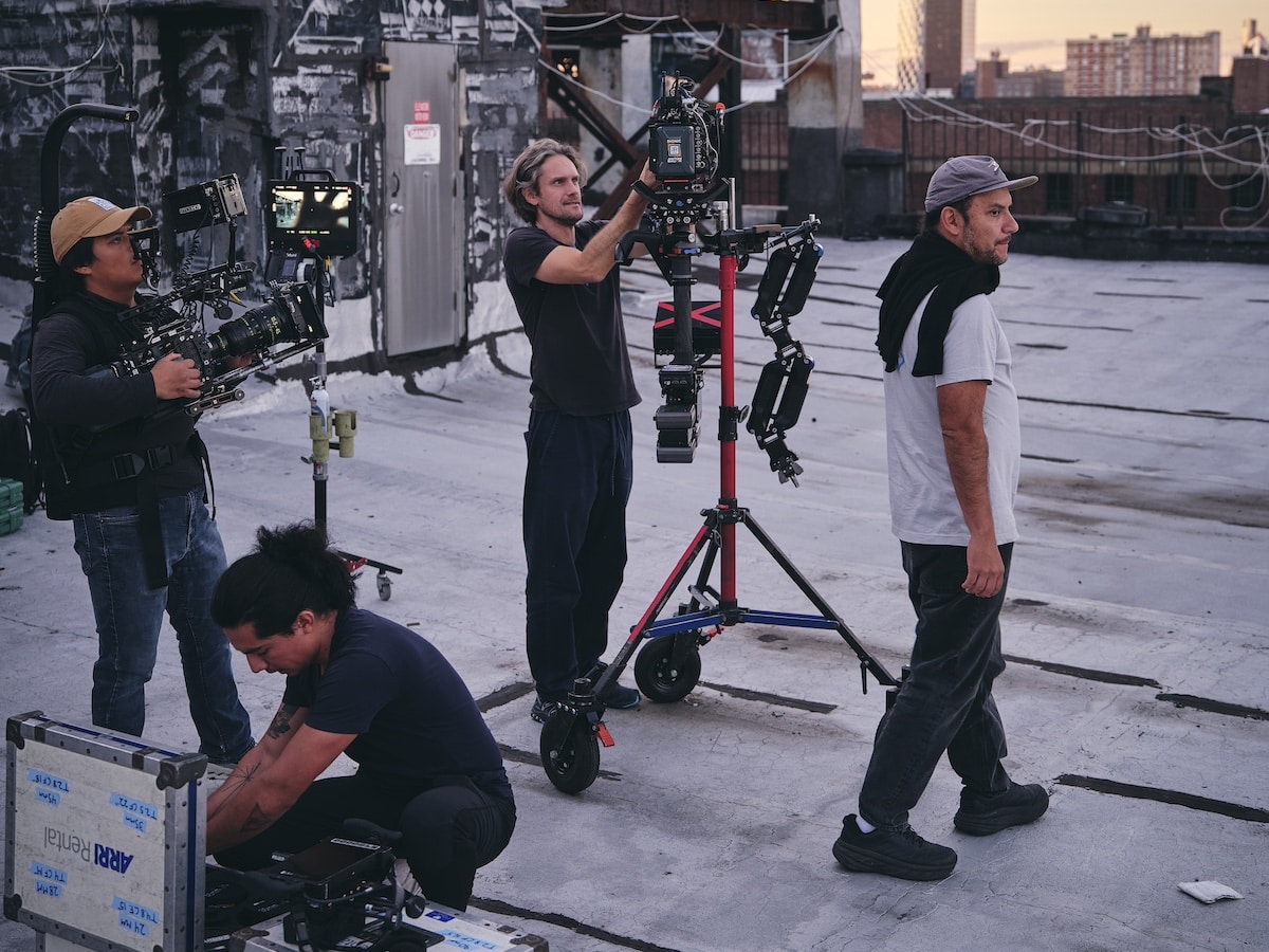DoP Alejandro Mejía im weißen T-Shirt mit seiner Crew auf einem Dach im New Yorker Stadtteil DUMBO (Foto: ARRI)