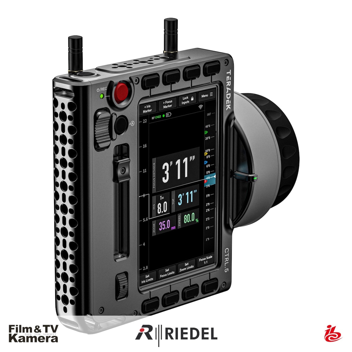 Teradek sieht das neue Handset CTRL.5 als Herzstück des drahtlosen Objektivsteuerungssystems Teradek RT. Es kombiniert ein ultrahelles Fünf-Zoll-SmallHD-Display mit CTRL.OS, einer speziell angepassten Version des Software-Toolkits PageOS von SmallHD, das speziell für Kameraassistenten und Focus-Puller entwickelt wurde. Ein neues Objektiv-Mapping-Tool ermöglicht es, Objektive anzulegen und vorgedruckten Fokusringen zuzuordnen, was schnelle Änderungen am Set ermöglicht. Über den Touchscreen oder eine der elf programmierbaren Benutzertasten kann man rasch auf gespeicherte Konfigurationen zugreifen.