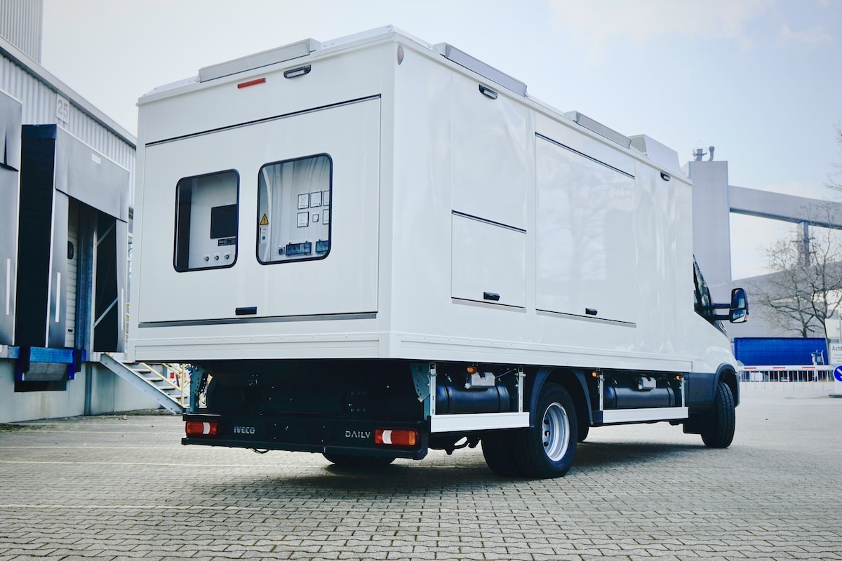 Die Vorteile von LPG- gegenüber CNG-Kraftstofftanks sieht Maier Bros. in der signifikanten Platz- und Gewichtsersparnis bei gleicher Kapazität und der besseren Verfügbarkeit von LPG durch ein zehnfach dichteres Tankstellennetz. Ist ein Fest-Stromnetz verfügbar, kann sich der Filmhybrid 130 zusätzlich mit sauberem Strom aus nachhaltigen Quellen versorgen. Hierfür reicht schon eine einfache Haushaltssteckdose aus. Eine moderne und leistungsfähige Photovoltaik-Anlage mit 1700 W Peak auf der Dachfläche liefert zusätzliche saubere Energie. Die intelligente Steuerung des FH130 kombiniert die jeweils günstigsten Energiequellen, vereint, bündelt und synchronisiert die Energie und gibt sie am Steckdosenfeld aus.