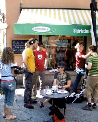 An der Hochschule erinnert Erwa als besonderen Moment das erste gemeinsame Drehen mit seinen Mitstudierenden. „Weil da plötzlich die geballte Stärke an Filmfreaks und Filmverrückten und Filmliebenden zusammenkam, die gemeinsam was machen wollten, nicht immer in dieselbe Richtung, aber auch daraus kann eine Stärke entstehen.“ Diese Art der Kollaboration, also anderen über die Schultern zu blicken und so weiter zu lernen, vermisst Erwa heute beim professionellen Drehen.