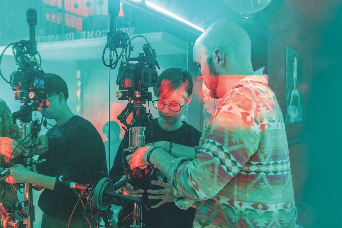 Die exklusive Vorpremiere im „bat Theater Berlin“ war für DoP Johannes Schmülling, bei diesem Projekt verantwortlich für die Bildgestaltung, vielversprechend: „Es war auch für uns ein besonderer Anblick, so viele Menschen gleichzeitig auf einer abgedunkelten Bühne unter einer Discokugel mit VR-Brillen tanzen zu sehen“, sagt er. „Die Idee dahinter ist, dass es einerseits eine filmische Erfahrung ist, die im Außen selbst zu einer Performance wird. Man erlebt das Spannungsfeld zwischen kollektiver Vereinzelung und virtueller Ekstase. Wie wir gemerkt haben, bringt dieses viele Menschen dazu, mitzutanzen“, so der DoP. „Besonders spannend finde ich Momente, in denen ich mich selbst aus Versehen der Illusion hingebe. Das ging mir öfter so, wenn ich mir mitten in der Nacht in meinem Atelier eine Schnittversion angeschaut und mich selbst beim Tanzen mit VR-Brille erwischt habe – und mich fragte, ob sich nicht vielleicht meine Nachbarn schon etwas wundern!“