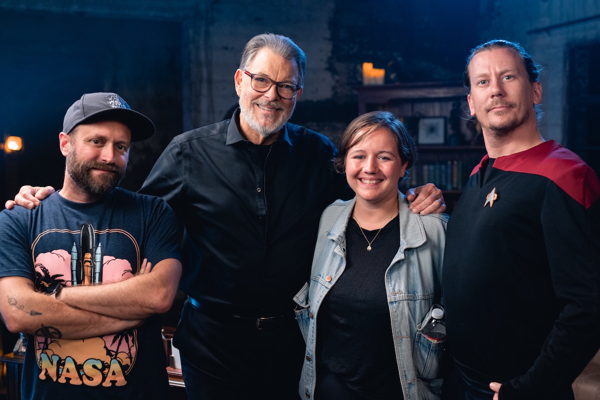 Gelungenes Reboot: Showrunner Holger B. Frick, Moderator Jonathan Frakes, Produktionsleiterin Lisa Tetrop und Produzent Benjamin Munz – in Anspielung auf Frakes Rolle in „Star Trek – The Next Generation“ in Starfleet-Uniform (Foto: Marshall Hall)