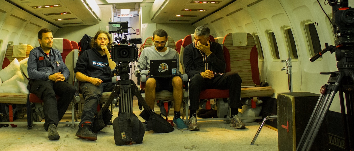 Für den Flugzeugcrash wurden einzelne Sitzreihen vor Grün gedreht.