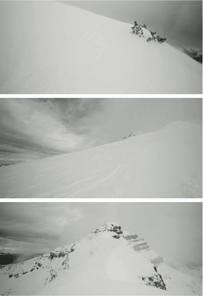 Schwarz-Weiß ist die Vorgabe der Filmhochschule für alle Film-01-Projekte. Es hat aber zusätzlich unheimlich gut in die Welt aus Schnee und Eis und zu diesem Fall gepasst. Wir haben damals auf einer Panasonic GH4 gedreht mit einem ZEISS Batis 18 mm / T 2.8 mit Autofokus und einem Hand-Gimbal. In unseren Gesprächen im Vorfeld konnten wir zu unserem Erstaunen feststellen, dass es viele Menschen gibt, die noch nie auf einem Berg waren und noch nie das Erlebnis hatten, ein Gipfelkreuz zu erreichen. So war die Debatte, warum es denn überhaupt welche gibt, nicht wirklich auf Augenhöhe zu führen. Unsere Idee war es deshalb, den Aufstieg subjektiv mittelbar zu gestalten. Ich habe dann ganz bewusst trotz Gimbal meine Schritte in die Kamerabewegung eingebaut, und wir haben mein Atmen als Ton mit aufgezeichnet, um von der großen Anstrengung zu erzählen.