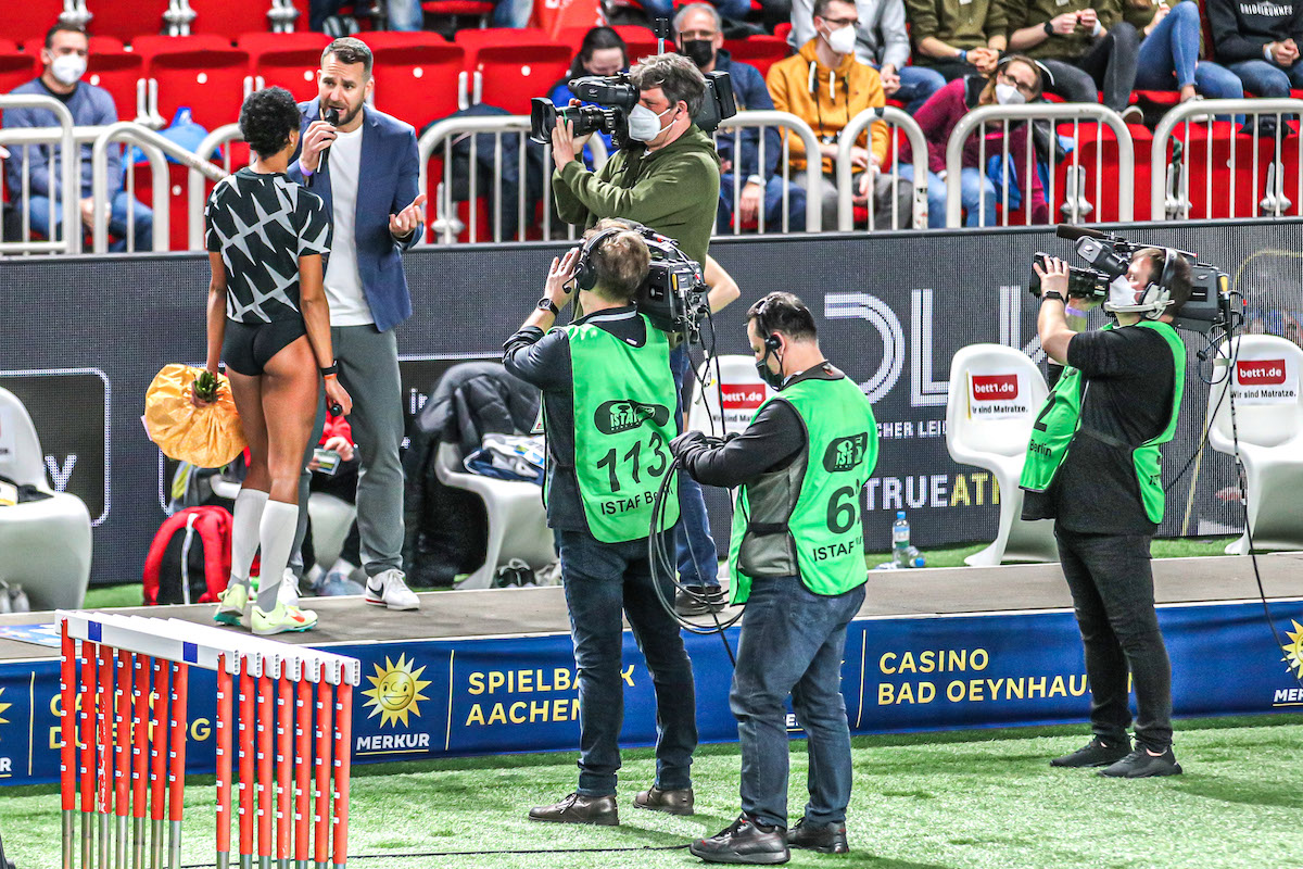 Beim ISTAF INDOOR Düsseldorf 2022 zeigte SPORT1 die Wettbewerbe drei Stunden lang live im Free-TV und als Stream. Studio Berlin kümmerte sich mit seinem Ü8 HD um die technische Umsetzung.Wir haben uns für das Heft 4.2022 das Geschehen zwischen Aufbau und Siegerehrung angesehen.