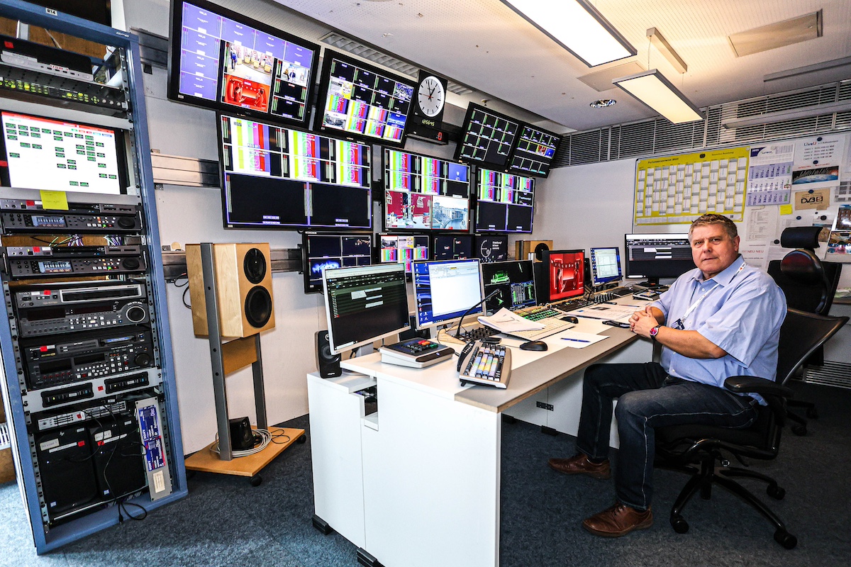 ARD-ProduktionsleiterWerner Melzer in der improvisierten Bild- und Tonregie