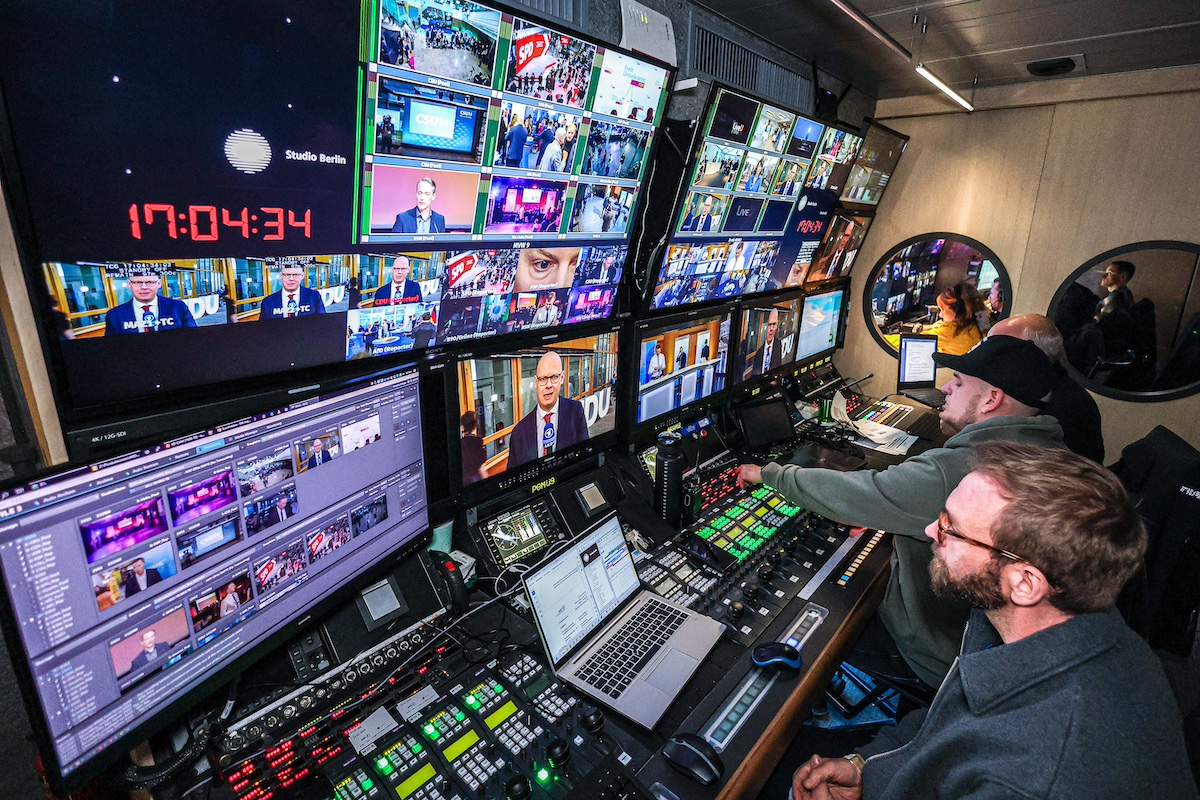 Als die Politik Fakten schuf, musste die Technik improvisieren: Im ARD-Hauptstadtstudio war die Modernisierung der Bild- und Ton-Regie von langer Hand geplant worden. Veraltete Technik sollte einer zukunftsfähigen IP-Infrastruktur weichen. Die Bundestagswahl, ursprünglich vorgesehen für September 2025 am Ende der vollen Legislaturperiode, sollte die erste große Live-Sendung mit dem neuen System werden. Doch der vorgezogene Wahltermin brachte eine unerwartete Herausforderung. Während die Bauarbeiten bereits in vollem Gange waren, das Studio entkernt war und die Technik nicht mehr zur Verfügung stand, musste innerhalb kürzester Zeit eine alternative Lösung gefunden werden.
