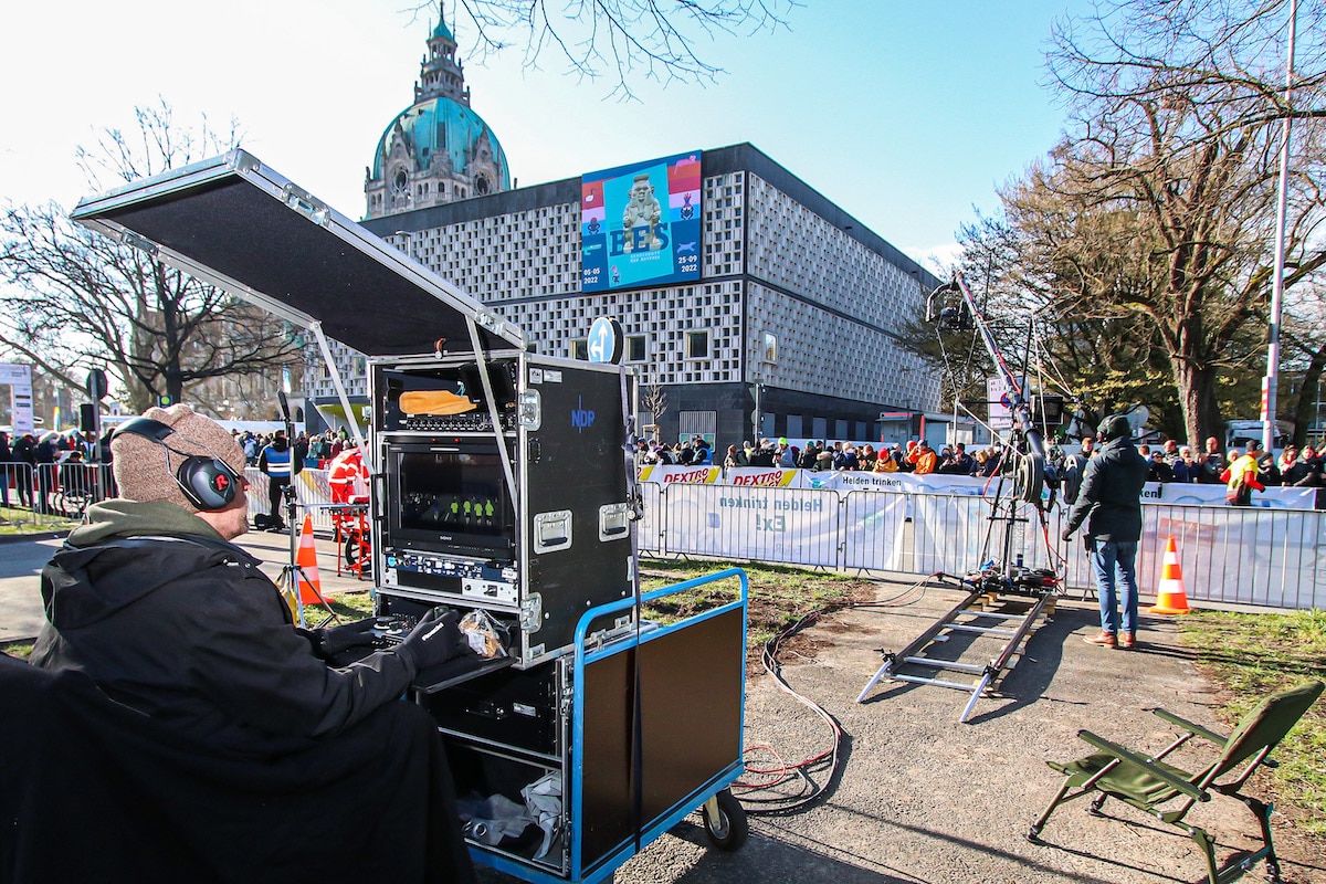 Der Hannover Marathon zählt zu den größten Sportereignissen in Niedersachsen. Der Veranstalter hatte für das Laufevent, zu dem sich 18.400 Läuferinnen und Läufer angemeldet hatten, eine interessante Strecke durch Hannover, den Stadtwald Eilenriede, am Maschsee entlang, durch mehrere Stadtteile von Hannover und die City ausgearbeitet und entsprechend absperren lassen. Um das traditionsreiche Sportevent in der niedersächsischen Landeshauptstadt beim 30. Jubiläum bestens in Szene zu setzen, wurde einiges an mobiler Produktionstechnik des NDR aus Hannover und Hamburg direkt an die Laufstrecke am Rudolf-Hillebrecht-Platz aufgefahren und dort als TV-Compound eingerichtet. Aus dem niederländischen Hilversum rückte der Dienstleister NEP mit einem Übertragungswagen, zwei Kamera-Motorrädern, einem Reporter-Motorrad sowie der entsprechenden Übertragungstechnik nach Hannover an.