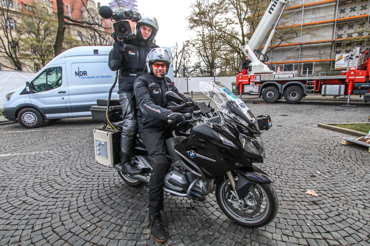 Die Kamera-Motorräder übertrugen ihre Bild- und Tonsignale über das 4G-Mobilfunknetz. (Foto: Creative Art Production)