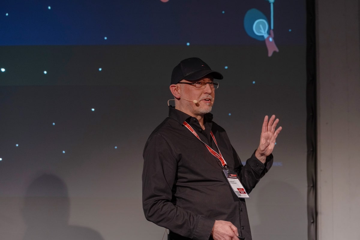 VFX Supervisor und Data Scientist Kay Delventhal bei seinem Talk auf der FMX 2024 (Foto: FMX / Dominique Brewing)
