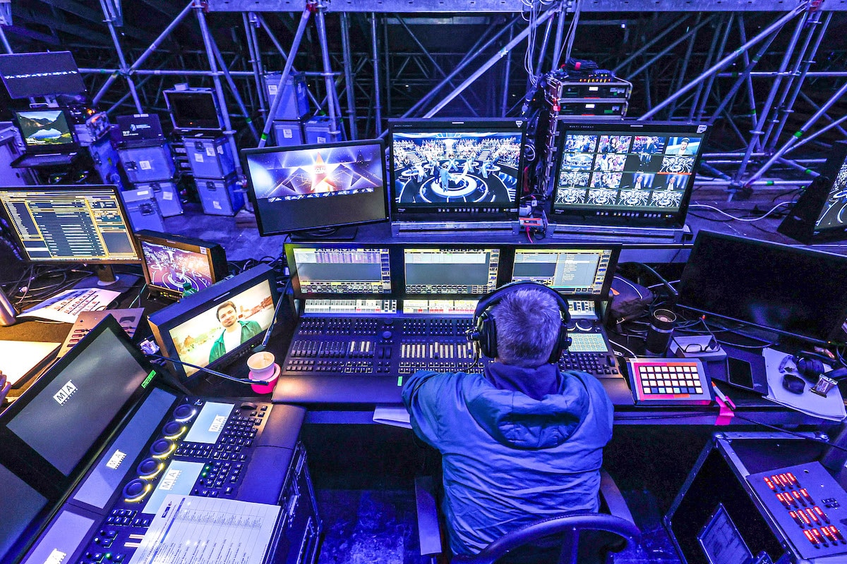 Das Licht-Medien-Control-Center war im Studio G hinter der Tribüne untergebracht und nahm dort fast die gesamte Bühnenrückwand ein. Das Licht- und Mediendesign stammte aus dem Hause „mo2 design“ mit Manfred Olma als lichtsetzendem Kameramann. Für die Steuerung der insgesamt 411 Scheinwerfer, die im Studio G installiert wurden, kamen fünf grandMA3-light-Konsolen zum Einsatz.
