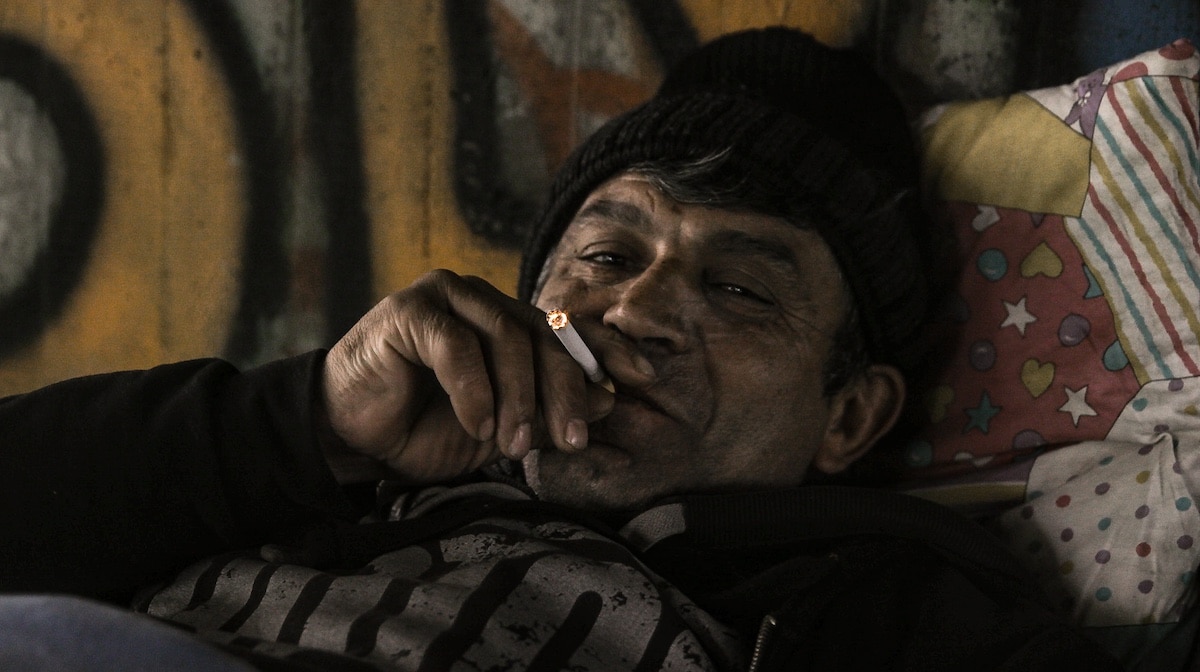 Das bedeutet, ich muss Technik haben, mit der ich nachts draußen drehen kann, wo fast kein Licht ist. Ich wollte natürlich auch sein, wo sie schlafen, also unter der Brücke, im Dreck, wo es auch kalt sein wird, wo es feucht ist. Ich hatte meine Kamera, mit der ich eigentlich überall drehen kann und zusätzlich ein kleines Akkulicht dabei, das dann ein Assistent getragen hat oder auch der Regisseur. Das war‘s. Es war ja auch klar, dass es überhaupt keinen Sinn macht, die Drehorte auszuleuchten, denn darum geht es ja in „Europa Passage“ genau nicht. Wir wollen erzählen, wie die Menschen wirklich leben.