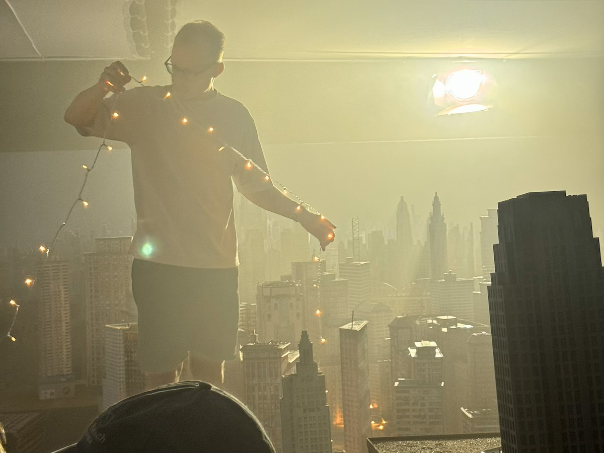 Die unterschiedlichen Lichtstimmungen wurden live im Miniaturstudio mit einer Lampe als falscher Sonne, viel Haze und in verschiedenen Durchgängen hergestellt. Zusätzlich nahm die Crew unterschiedliche Shots für Silhouette, Straßenlicht oder Licht in den Fenstern auf. Das Straßenlicht entstand durch mit Astera-Tubes kombinierte Lichterketten, die zwischen die Gebäude gelegt wurden. Das Licht in den Fenstern wurde durch einen besonderen Trick realisiert: Dennis Rettkowski vom Postproduktionshaus Lumatic hatte die Idee, die Fenster der Stadt mit UV-reflektierender Farbe zu bemalen und dann einen Durchgang nur unter UV-Licht aufzuzeichnen. [15591]
