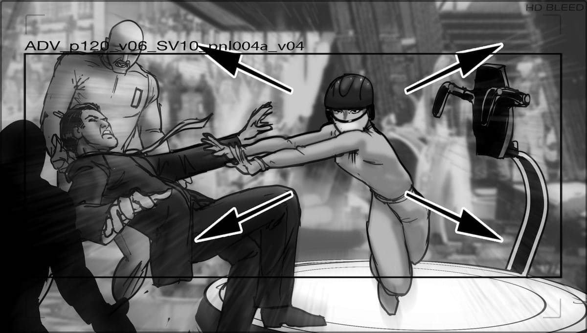 „Unser Job ist es, dem Regisseur eine Karte zu liefern, wie die Szene zu drehen ist: die Kamerabewegungen, die Handlungen, wann sie passieren, welche Beats oder welcher Dialog bei welchen Frames kommt“, erklärt Murray. „Es geht nicht um Illustrationen, es geht nicht um schöne Bilder. Je schöner, desto besser, aber das ist nicht das Wichtige an Storyboards.“