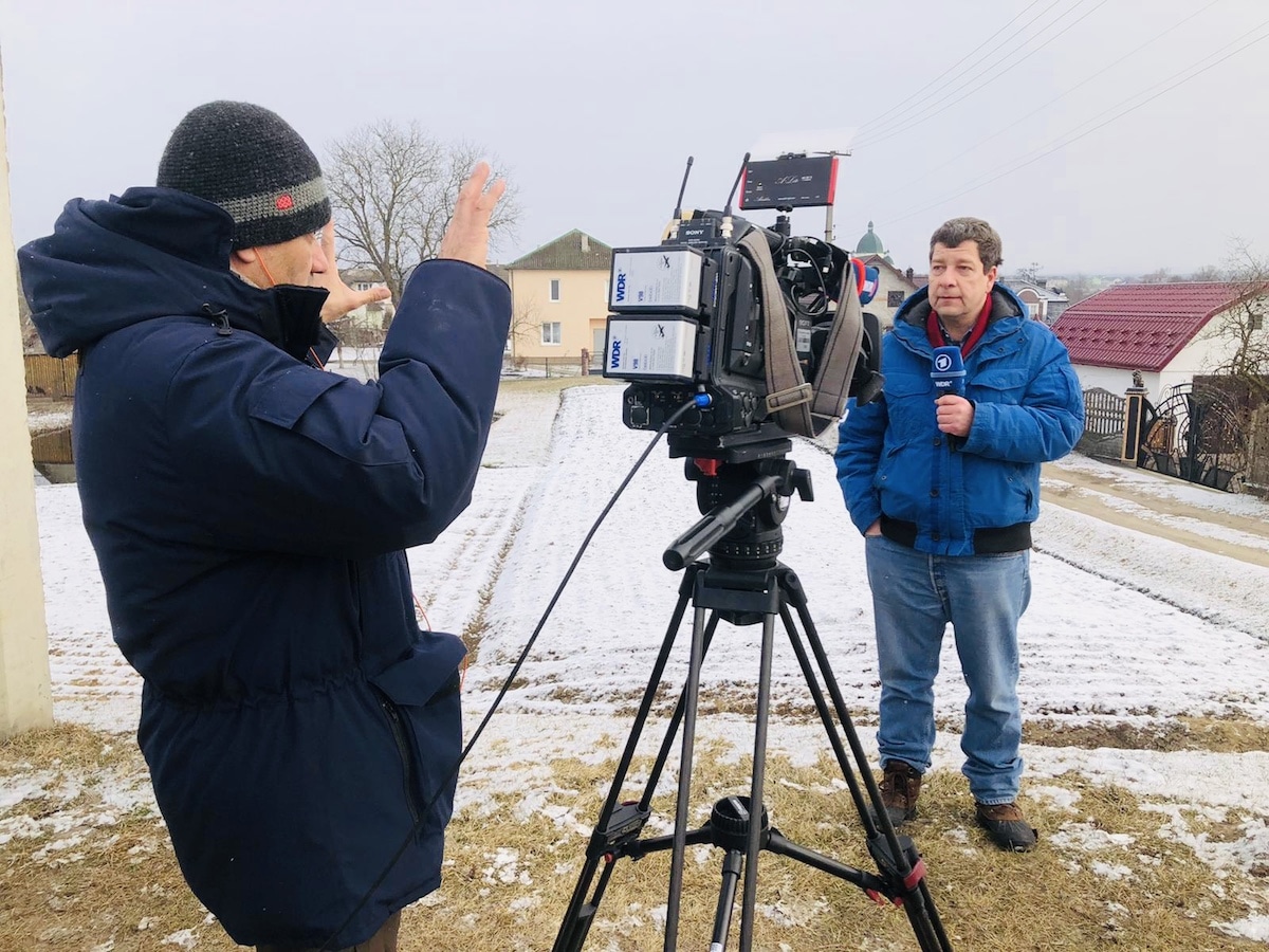 Eingefangen hat sie das ARD-Team vom WDR. In den ersten Wochen an der Kamera war Amr Hedia, freier Kameramann im Dienst des Westdeutschen Rundfunks. Er blieb insgesamt 50 Tage in der Ukraine, berichtete zusammen mit den Korrespondenten Olaf Bock, Georg Restle und Norbert Hahn, bis er Anfang April nach Köln zurückkehrte. Hedia gehörte auch zu den Kameraleuten, die früh Bilder aus Butscha machten.