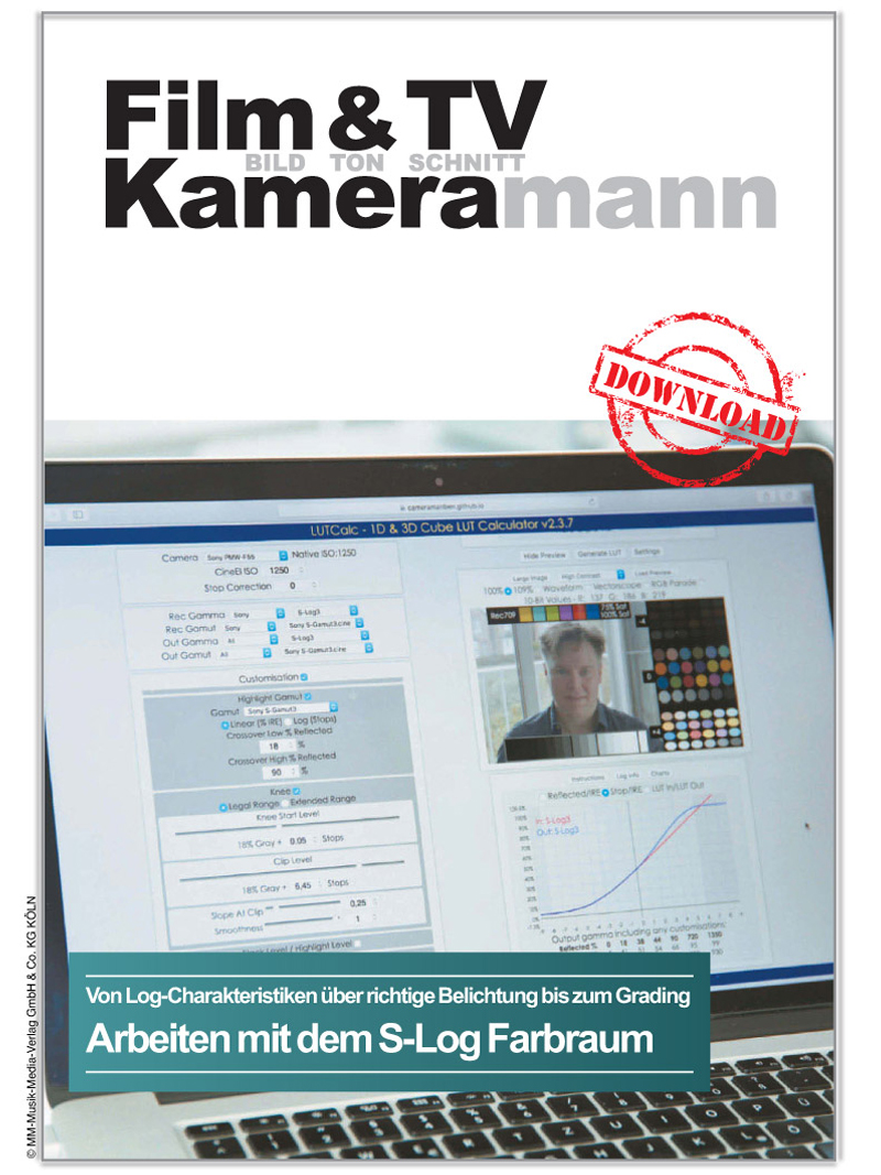 Mit der Popularität der Sony PMW-F5 und F55 sowie der Erweiterung der Reihe durch FS7 und FS7 MkII, steigt das Interesse an der Nachbearbeitung des Sony-Farbraums S-Log. In vier Teilen beleuchtet Kameramann Ulrich Mors (BVFK) das Thema S-Log. Er erläutert die Grundalgen von Log-Kurven und Gamma (Teil 1), schaut sich die Blendenstufen von S-Log, Slog2 und S-Log3 an (Teil 2), vergleicht S-Log mit anderen Farbräumen von Canon, Panasonic oder GoPro (Teil 3) und arbeitet schließlich mit Look-Up-Tables (LUT) im Grading (Teil 4).