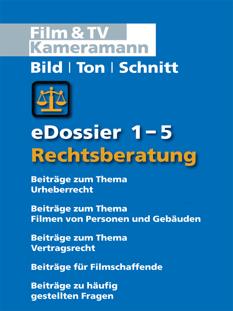 In fünf eDossiers hat FILM & TV KAMERAMANN Beiträge zu diesen Themengebieten gebündelt, die einen ersten Überblick über die jeweilige Gesetzeslage bieten. Autor ist der Berliner Anwalt und Dozent Christlieb Klages.