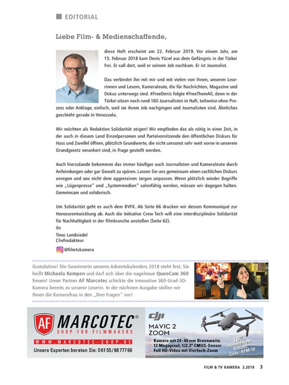 "Capernaum": neun Monate Dreh und Leben in Beirut +++ Test: Canon XF705 +++ Festival: Max Ophüls Preis 2019 +++ Interview: DoP Robbie Ryan über "The Favourite"8,50 €