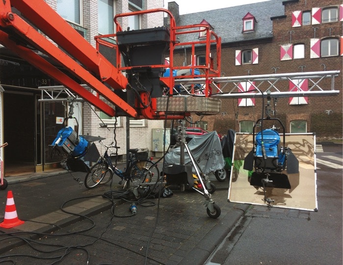 Besucht man ein Filmset, trifft man meist als erstes auf dessen Stromversorgung. Der Generator, im Regelfall schallgedämpft auf einem LKW montiert, wird meist weit abseits des Geschehens aufgestellt. So ist er nicht im Weg, nicht zu hören und auch leicht abzukoppeln, damit er bewegt werden kann. Dicke schwarze Starkstromkabel schlängeln sich, manchmal mustergültig durch Kabelbrücken oder über Traversen, zu Verteilern. Von hier gelangt der Strom zu den diversen Verbrauchern. Diese sind in Leistung und Verbrauch vielfältig, reichen sie doch von den Smartphone-Ladegeräten der Teammitglieder über die Kaffeemaschine bis zu großen HMI-Scheinwerfern mit über 20 Kilowatt. Ausfälle dürfen nicht geschehen und müssen, wenn doch, schnell und problemlos behoben werden können. Die Anforderungen an den Strom am Filmset sind also groß.