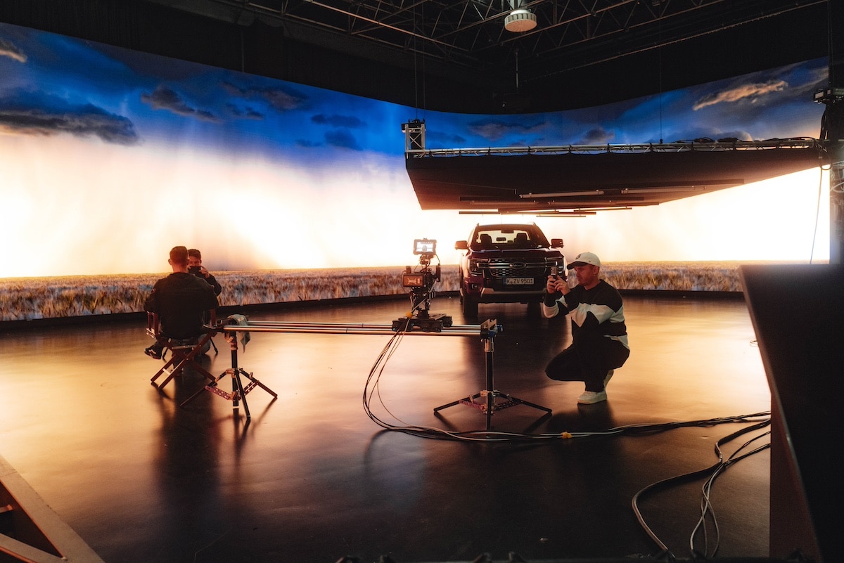 Das 360 Quadratmeter große Studio mit insgesamt 130 Quadratmetern hochauflösenden LED-Panels ist seit Februar 2023 am Markt und wurde mit Unterstützung von Daniel Silber, Senior Executive Creative & Solutions bei Plazamedia, prinzipiell für das freie Non-Profit-Projekt zur Verfügung gestellt. Doch was drehen? Die Weiss-Zwillinge besannen sich auf ihre Kernkompetenz Automotive und konzipierten mit Motion Graphic Designer Dennis Götz und Florian Wolf einen Videoclip mit einem Ford Ranger.
