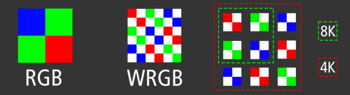 Das Prinzip von Bayer- und WRGB-Sensor im Vergleich sowie ein Schema des Downsamplings bei der URSA Cine 12K LF (Grafik: Frank Glencairn)