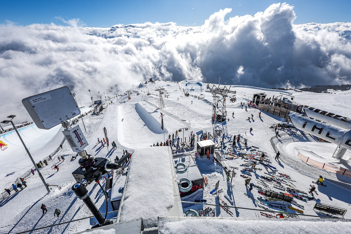 Um den 9. Snowboard & Freeski World Cup auf dem Bergrücken des Crap Sogn Gion in Laax übertragen zu können, musste der Host Broadcaster SRF das komplette Material mit Seilbahn und Motorschlitten auf 2.252 Meter Höhe transportieren und obendrein eine TV-Produktion auch bei zweistelligen Minusgraden gewährleisten.