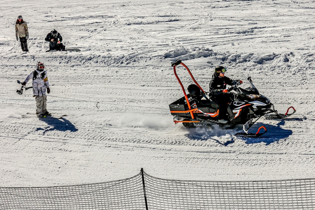 Kameramann Frantisek Horejsi wurde direkt nach dem Dreh wieder mit einem Motorschlitten an den Start geschleppt. (Fotos: Creative Art Production)