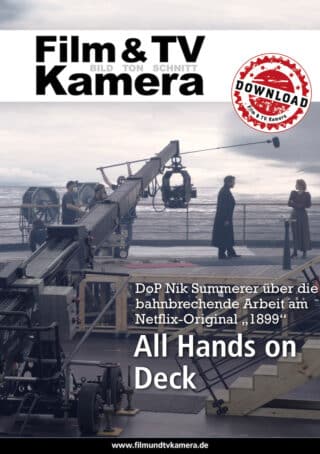 Das Kamerapaket für „1899“ stand aufgrund des Wunsches von DoP Summerer schon früh fest. Die ARRI ALEXA Mini LF eignet sich aufgrund des Formfaktors und ihres großen Sensors. Der hat bei LED-Wänden jedoch Vor- und Nachteile. „Natürlich ist es einfacher, mit einem Large-Format-Sensor zu arbeiten, da man schneller eine Unschärfe herstellen kann“, so Söllner. „Aber es wird dadurch auch der Bildausschnitt größer, so dass ich mit der LF eine größere Brennweite wählen muss, als bei einer Kamera mit kleinerem Sensor, um den gleichen Bildausschnitt zu haben.“ Beide Effekte gleichen sich etwa aus, so Söllner. Das heißt, es ist am Ende dann wieder eine Frage, welche Ästhetik gewünscht ist. [15286]